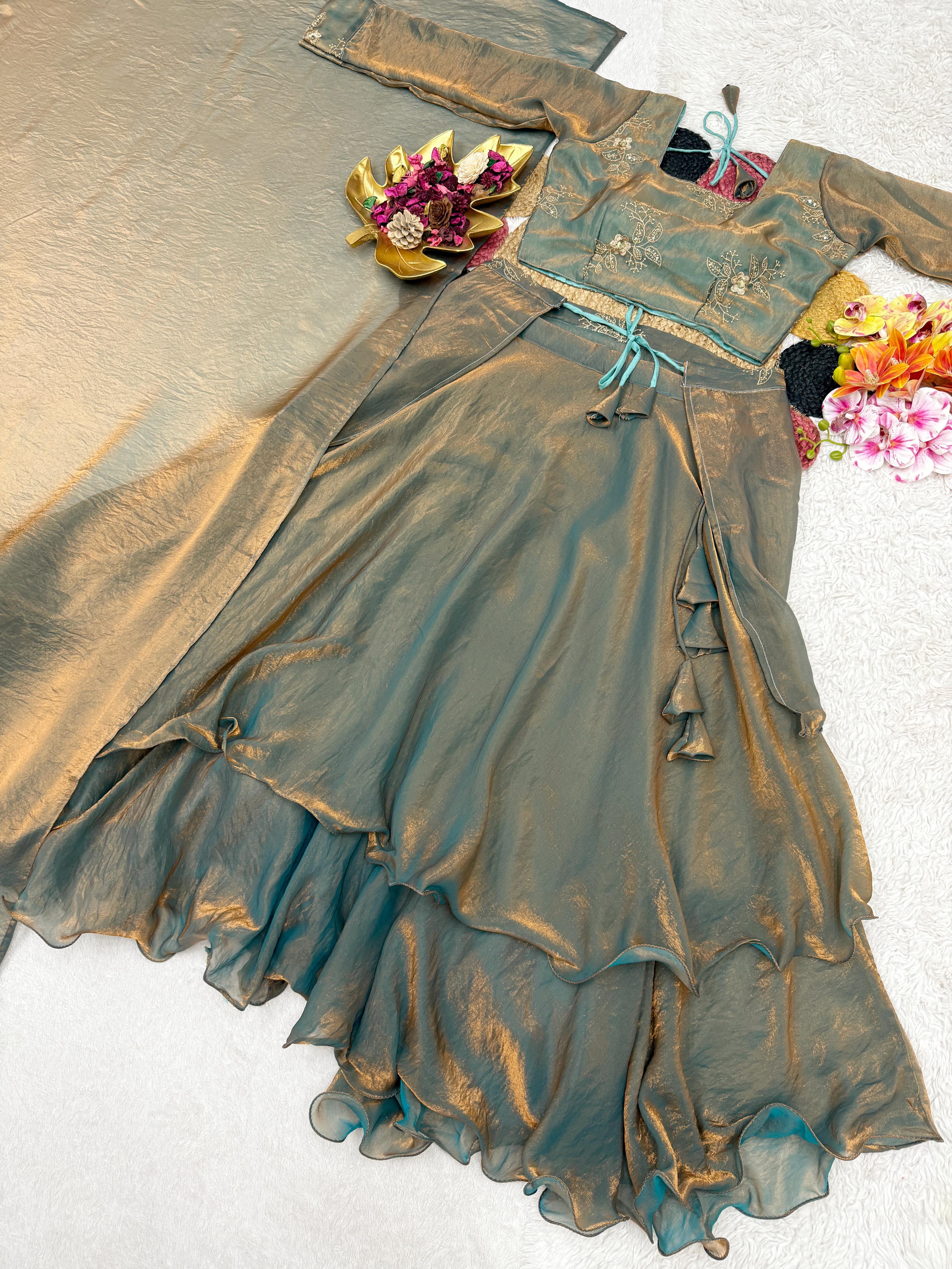 Launching Our Latest Christmas Collection Beautiful Heavy Space Silk 3 In 1 Style Lehenga choli Set Double Frill – Where Elegance Meets Comfort! ✨