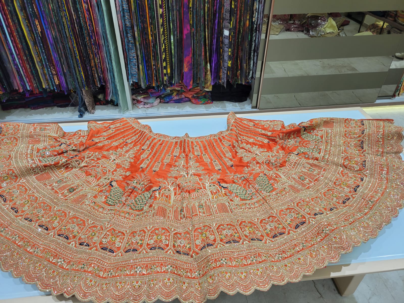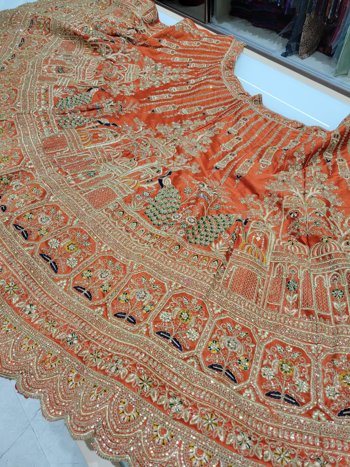 Most Awaited Velvet Zarkan Work Rust Orange Lehenga Choli....