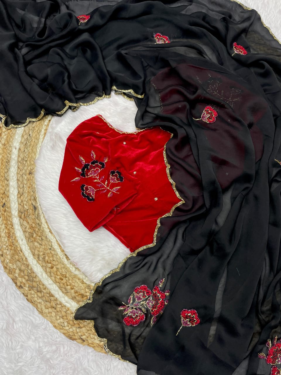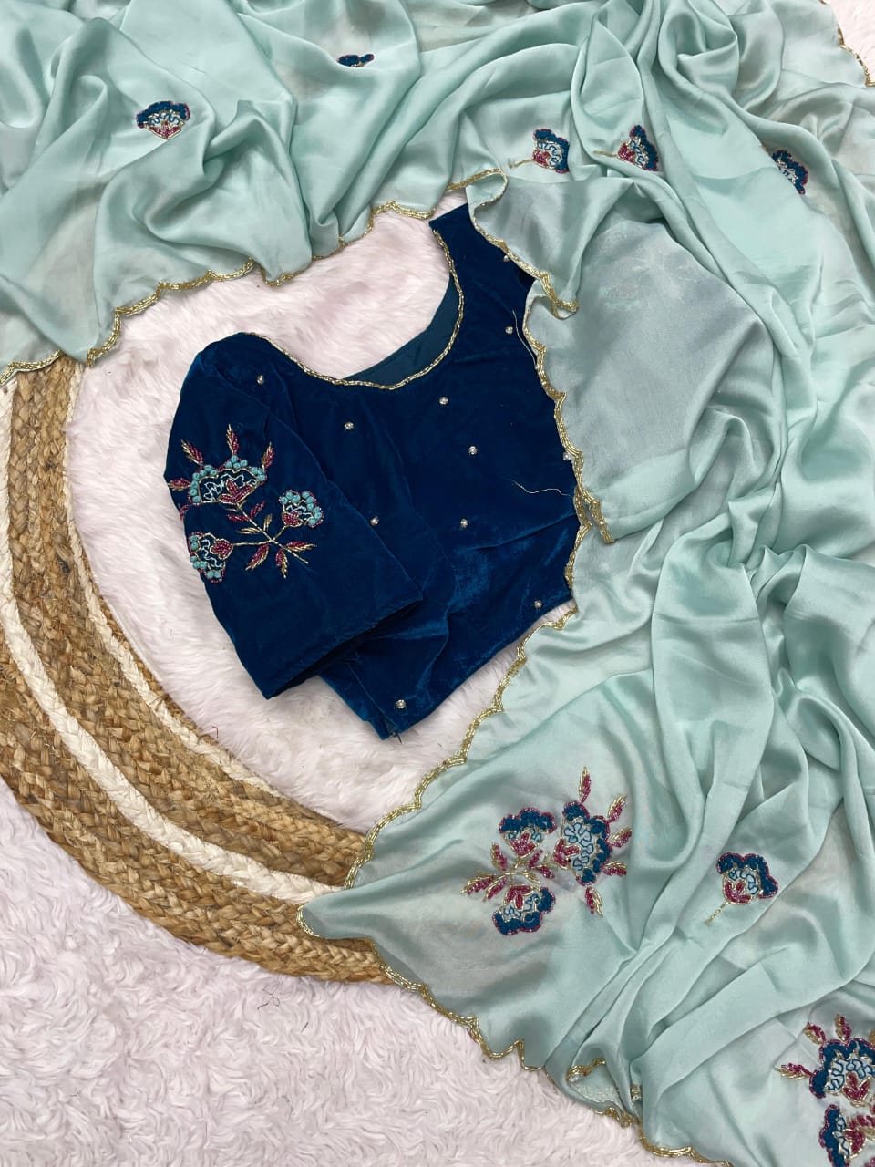 Blouse:- Velvet 9000 Designer Blouse Having 2 Butta STICH BLOUSE 38 + 4 inch margin