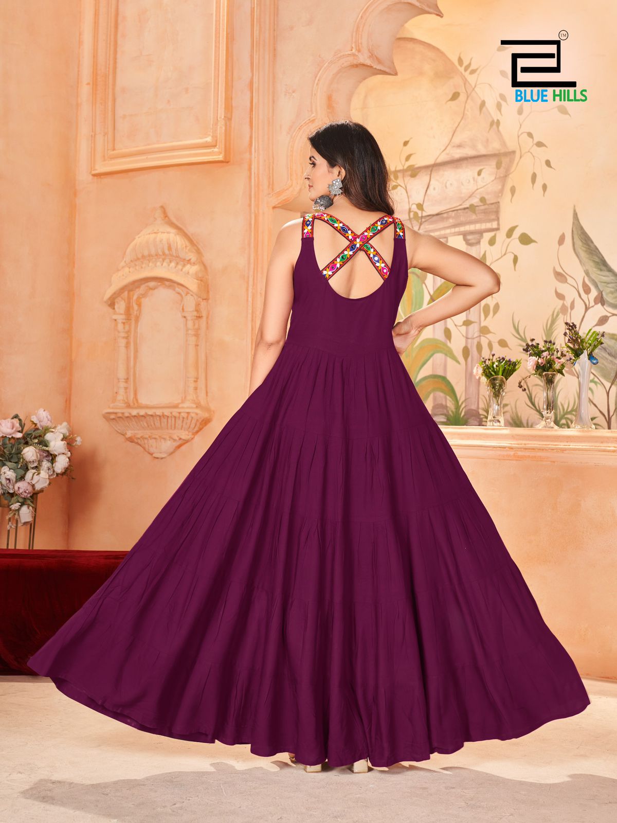 Long Frill Gown With Front and Back Pattern in 6 Colors