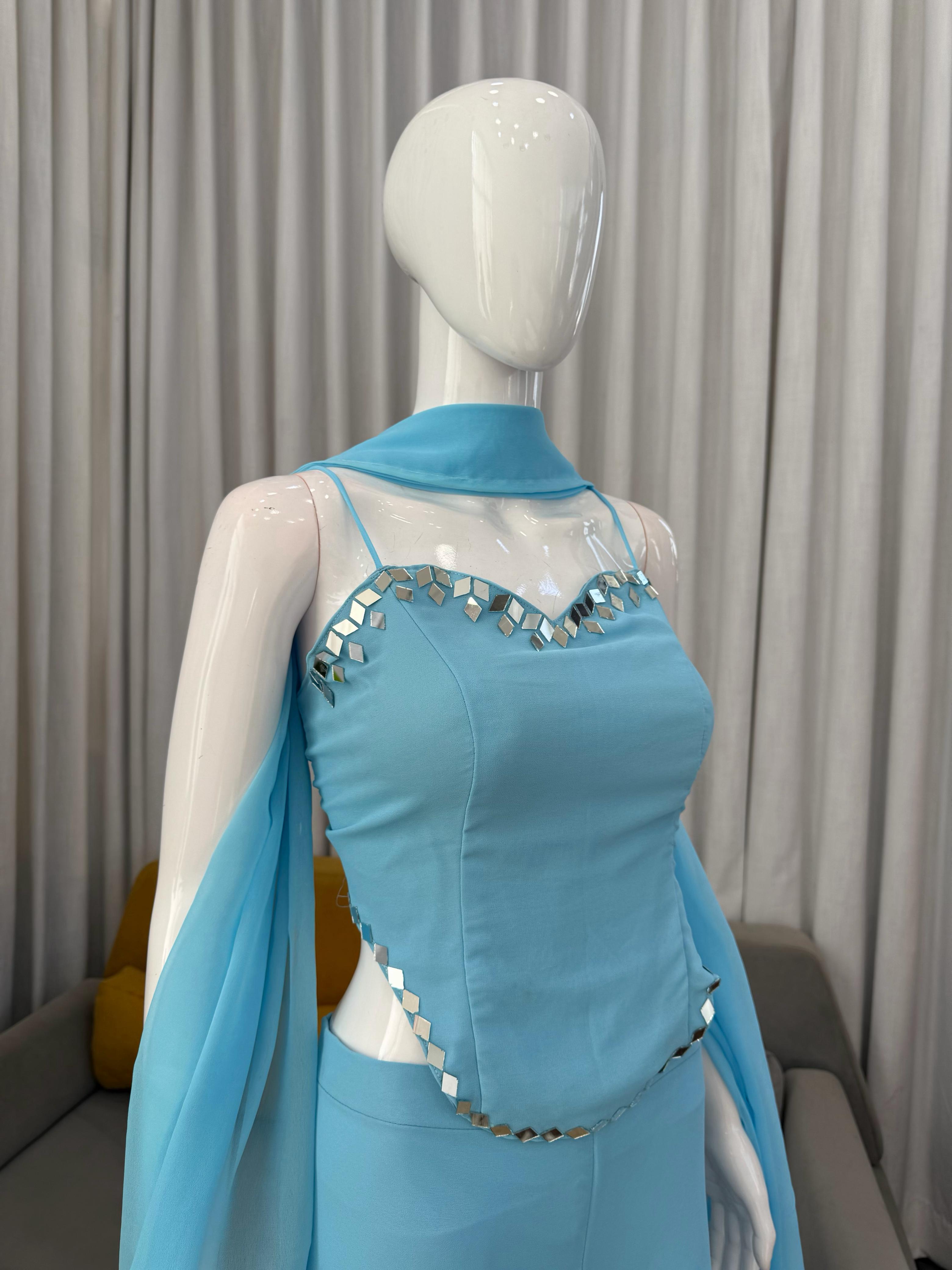 🎀 Crafted in Classy Tones with Premium Fabric & Mirror Detailing