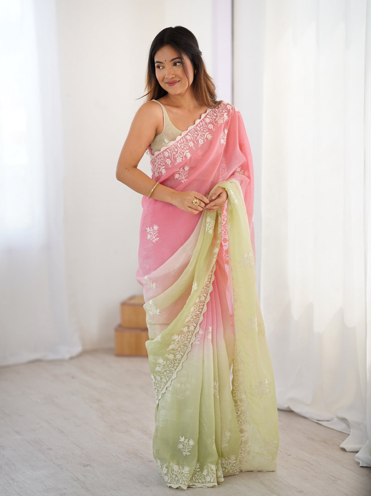 FABRICS: SUPER FINE TRENDY CRUNCHY PEDING CLOTH WITH HEAVY COTTON THREAD EMBROIDERY WORK CUT WORK EMBROIDERY BORDER IN COTTON THREAD WORK