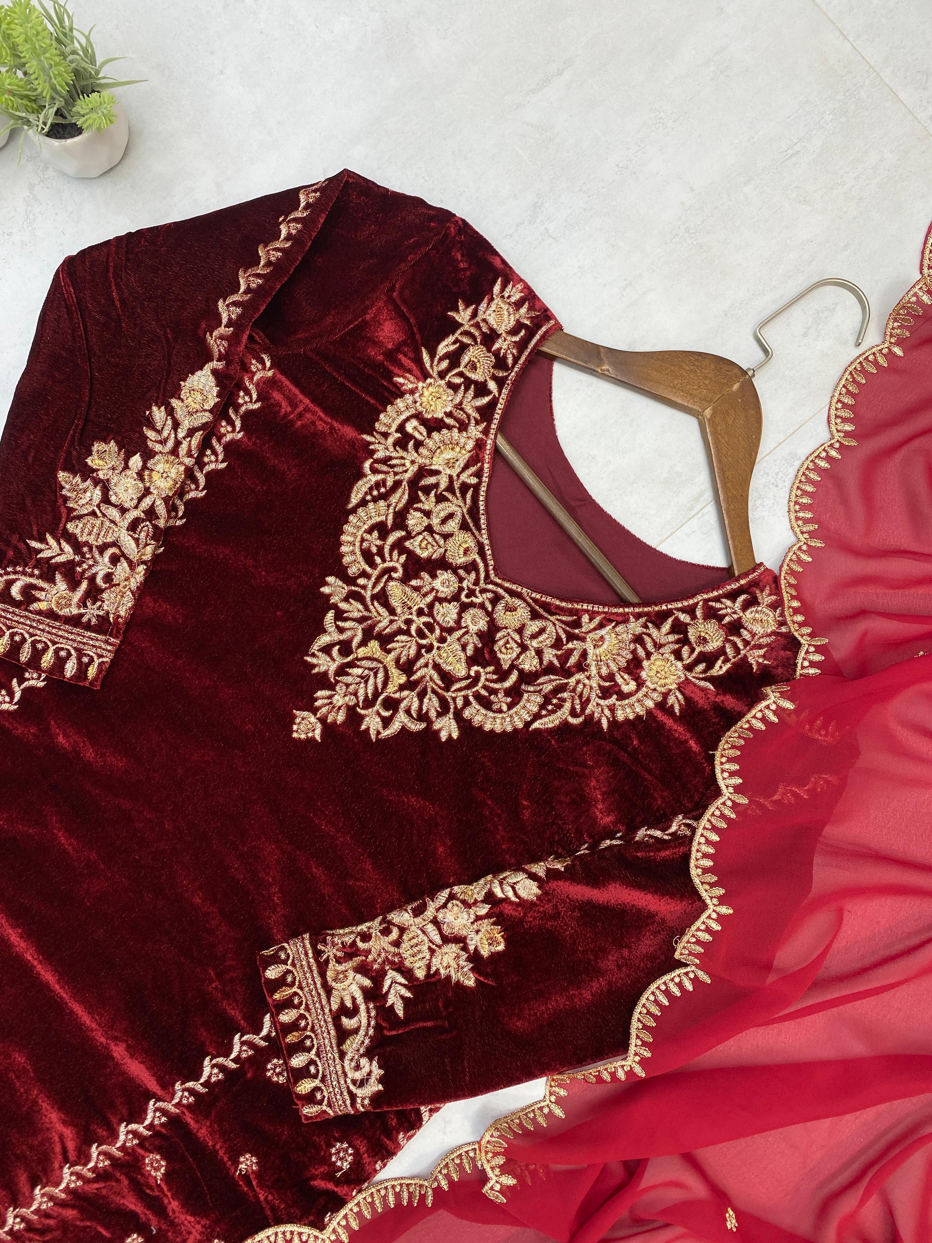 _✨2025 VELVET FOR THIS WINTER SEASON OUR EXCLUSIVE 3 PIECE PLAZZO PAIR WITH EMBROIDERY WORK✨_