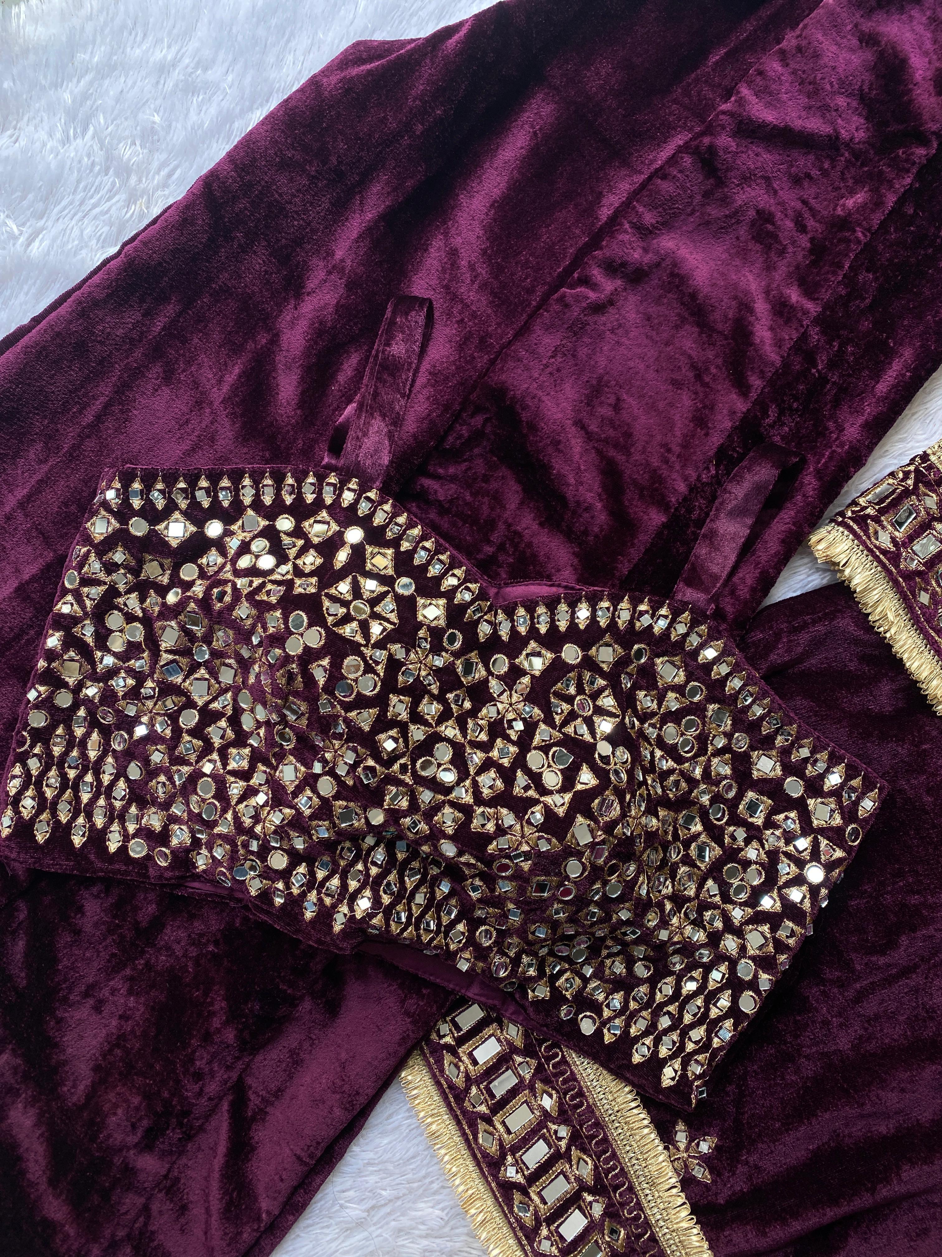 __2025 WINTER SEASON IN VELVET EXCLUSIVE 4 PIECE PLAZZO PAIR WITH REAL MIRROR AND EMBROIDERY WORK✨__